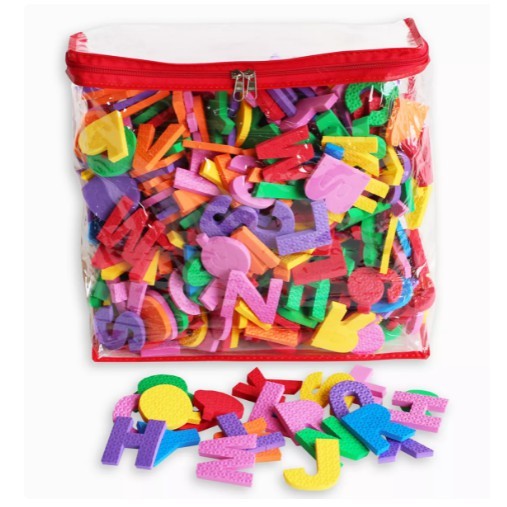 Cada bolsa forma no máximo 9 alfabetos completos, e 9 jogos de números. as peças restantes são repetidas para auxiliar na formação de frases.
