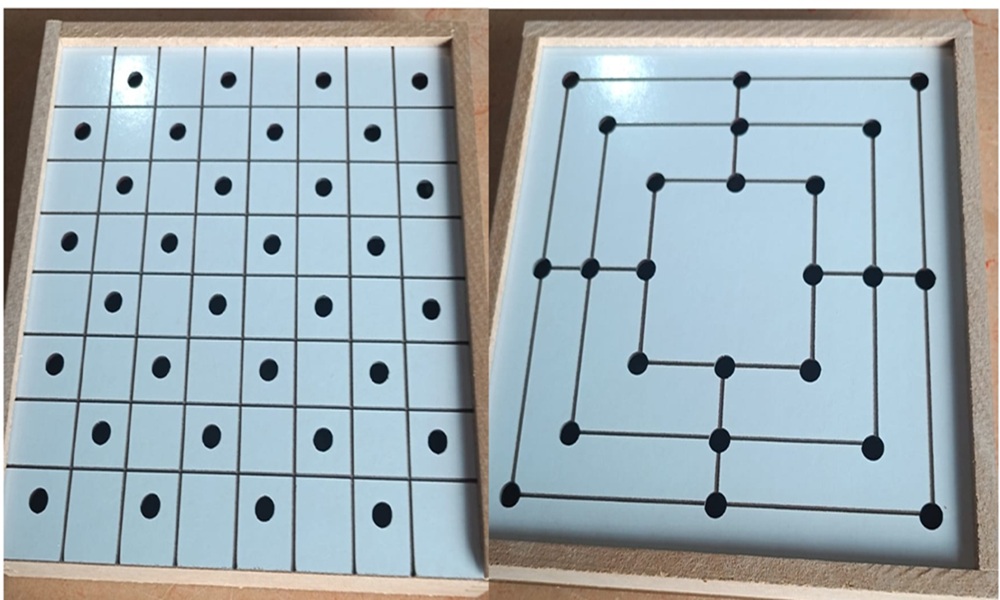 Dois jogos em um só tabuleiro: dama e trilha, para diversão variada
