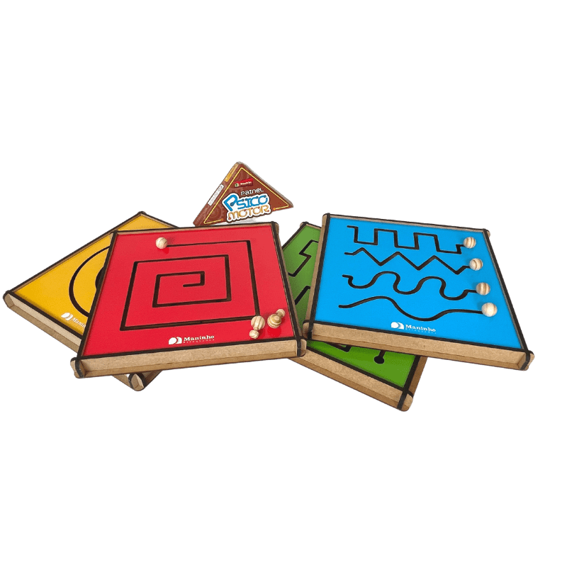 Os Painéis Psicomotores são indicados na fase de alfabetização e auxilia na percepção dos traçados de curvilíneos e linear.